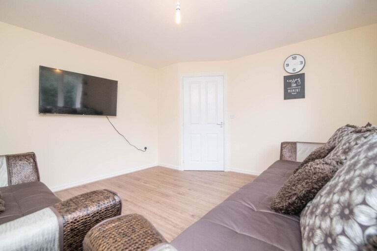 The hallway has a handy store cupboard, stairs to the first floor, door to the lounge, guest W.C and the stand out feature kitchen dining room. The kitchen is modern, well presented, has french doors over looking the garden and is adjacent to the very practical utility room. The rear garden is mostly laid to lawn with a paved patio area. The first floor has a master bedroom with en-suite and fitted wardrobes, two further bedrooms and a house bathroom, Fitted kitchen dining room, private car park in front of the garage and off road parking